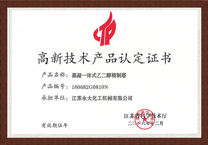 高新技术产品-蒸凝一体式乙二醇精制塔