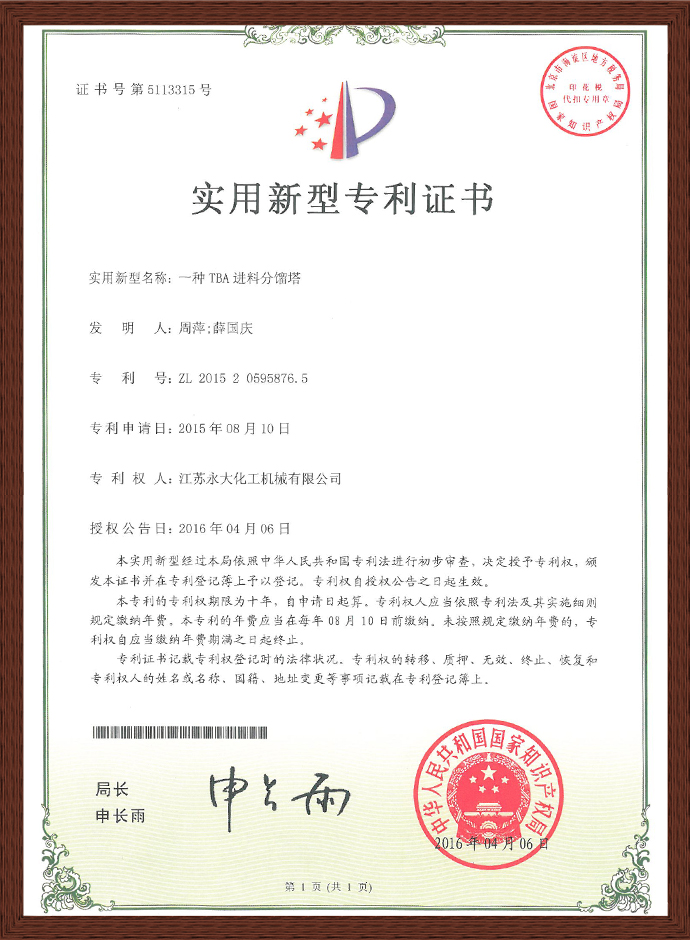 一种TBA进料分馏塔