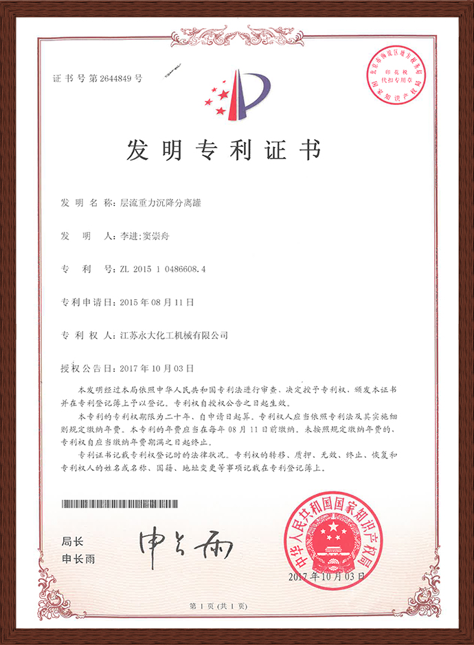 层流重力沉降分离罐发明专利