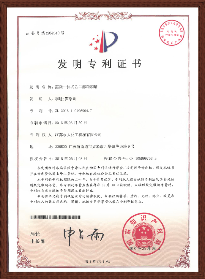 蒸凝式乙二醇精制塔发明专利