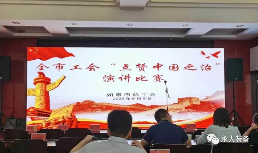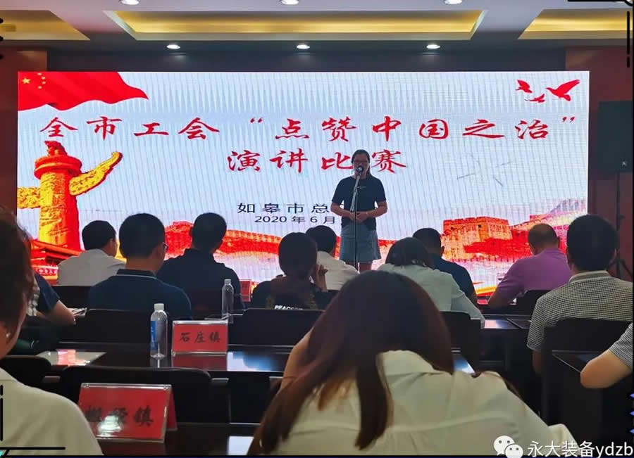 2020年6月9日下午,由如皋市总工会举办的“点赞中国之治”主题演讲比赛在市总工会二楼报告厅举行。此次比赛紧扣“点赞中国之治”主题,围绕贯彻落实党的十九届四中全会精神,让基层职工更加深刻认识工国国家制度和治理体系的科学内涵、本质特征和显著优势,更好地理解“中国特色社会主义为什么好”这个重大问题,从而更加坚定中国特色社会主义制度自信。